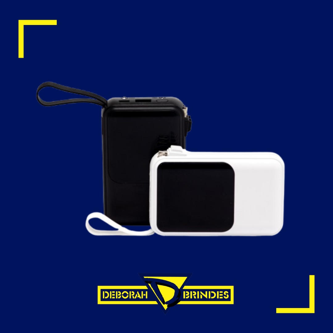 Descrição: Carregador power bank de 10.000mAh com lanternas e múltiplas saídas. Fabricado em plástico com display integrado, este power bank vem equipado com quatro cabos de carregamento, eliminando a necessidade de transportar cabos extras. Compatível com entradas V8, Tipo-C, Lightning e USB, praticidade é o sinônimo deste carregador.