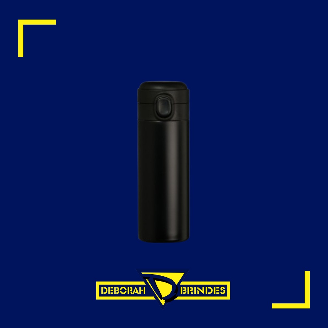 Descrição: Garrafa térmica em inox com parede dupla, capacidade de 400ml. Tampa com botão central para abertura e borracha interna para vedação.