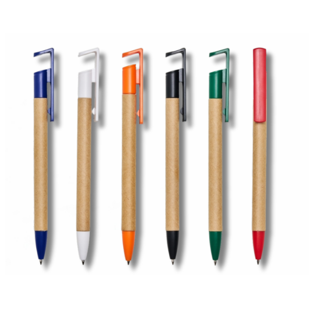 Caneta Ecológica com Suporte para Celular 00016 é ideal como caneta personalizada para reuniões, eventos corporativos, ações de relacionamento e kits executivos, com personalização profissional para destacar sua marca em ações corporativas.